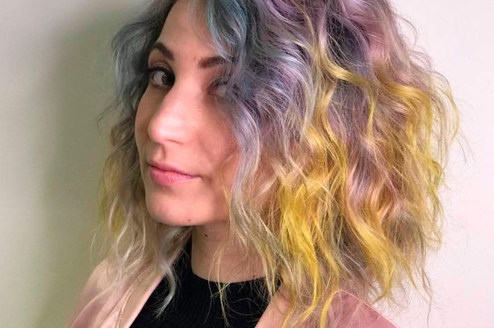 Use Split-Complementary when you want to create traffic-stopping Creative Haircolours. This Colour Chord makes our brain stop and look, and this dramatic effect is ideal for Unicorn Hair and artistic clients. Something fun to try could be a 8 level Peach + 9 level Apricot + Pale Turquoise (this is getting me all excited…. we just need to find a willing model to play with!) Or perhaps you could try a Cool Violet/Grey Colour Melt with warm Pink and Yellow ends, as worn by my artist friend Tal Fitzpatrick.