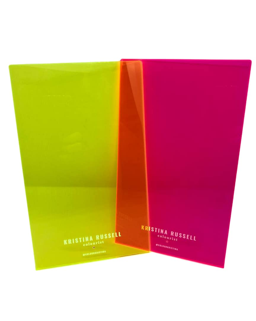 The @ColourKristina Wide Foil + Balayage Boards are made in Australia using high-quality acrylic products. All of the boards are made to order in Australia. Acrylic sheets are the perfect material for hair-painting tools. We have 2 different Neon colours to choose from in the wider size.